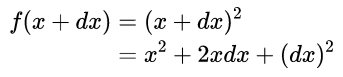 我们知道,除数是不能为0的,如果你想分子分母同时除以一个数,就必须保证这个数不是0。现在我们是想除以dx,这个dx就是我们前面定义的无穷小量,它无限接近于0却又不等于0。所以,似乎我们姑且把它当作一个非零的量直接给约掉,那么导数上下同时除以dx就成了这样:这个式子看起来简洁了一些,但是后面还是拖了一个小尾巴dx。2x是一个有限的数,一个有限的数加上一个无穷小量,结果是多少?似乎还是应该等于这个具体的数。比如,100加上一个无穷小,结果应该还是100,因为如果等于100.00…0001那就不对了,无穷小肯定比你所有能给出的数还小啊,那么也肯定必须比0.00…001还小。
