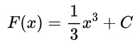 所以,现在求曲线f(x)=x²和x轴在0到1区间里围成面积这个原本属于积分的事情,现在就可以通过反向微分(求原函数)来实现。这是一次非常华丽的转变,马上你就会看到这种新方法会把问题简化到什么程度,而且,正是这种力量让数学发生了根本性的改变。好,既然要用反向微分的方法求面积,那我们就去找f(x)=x²的原函数,看看到底是哪个函数求导之后变成了f(x)=x²。我们用F(x)来表示这个原函数,那么F(x)就是它(C为常数):大家不放心可以自己去验算一下,看看这个F(x)求导之后的结果是不是f(x)=x²。因为求导是一个非常重要、基础的东西,所以求一些常见函数的导数和原函数都被一劳永逸的制成了表格,大家需要的时候直接去查,记住几个常用的就行。不过,在学习的初期,大家还是要亲自去算一些求导的例子。