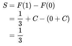 有了f(x)=x²的原函数F(x)以后,怎么去求f(x)和x轴在0到1区间里围成的面积呢?前面已经分析了,原函数具有积分的效果,而积分就是曲线围成的面积,所以原函数也可以表示曲线围成的面积(为了方便理解,这里我们先不考虑常数c的影响,反正函数相减的时候常数c会抵消掉)。