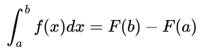 因此,我们要求f(x)与x轴在0到1区间内围成的面积,直接用这个代表面积的原函数F(x)在1处的值F(1)减去在0处的值F(0)就完了:F(1)-F(0)就是曲线在0到1之间围成的面积,我们这样得到的结果是1/3,跟我们原来用矩形逼近计算的结果一模一样,惊不惊喜,意不意外?但是它明显比原来的方法简单太多太多太多了,简单到一个中学生都能轻而易举地算出来,这才是微积分的真正力量。有了这样的铺垫,微积分基本定理(牛顿-莱布尼茨公式)就非常容易理解了:如果函数f(x)在区间a到b之间连续(简单理解就是曲线没有断),并且存在原函数F(x),那么就有:这是式子的左边就是函数f(x)与x轴在a到b区间内围成的面积,这点我们在讲积分的时候讲过了:式子的右边就是原函数在b点和a点的差。意义也很明确:函数反向求导得到的原函数F(x)本来就表示面积,那么F(b)-F(a)自然就是这两点之间的面积之差。于是公式左右两边就都表示面积,完美!
