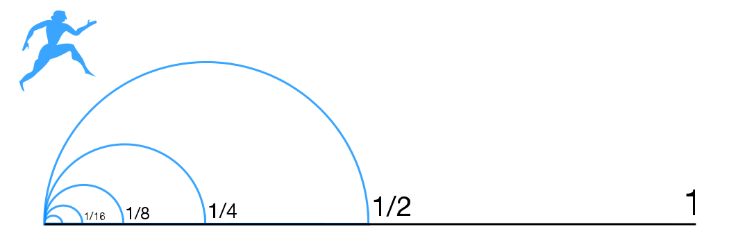 但是这个图景是不对的,为什么?因为实数是稠密的。稠密就是说任意两个点(实数)之间永远都有无数个点(实数)(你自己想想是不是,1和2之间有多少个数?)。你以为它能从A点移动到邻近的下一个B点么?对不起,这个它真做不到!A点和B点之间永远有无数个点,也就是说A点根本就没有所谓的“下一个点”。你认为我一定要走完了A点到B点之间所有的点才能到达B点,那就不可避免地会陷入到芝诺悖论里去。因为你压根就不可能走完任何两个点之间的所有点(因为是无穷多个),所以,如果按照这种逻辑,你就根本“走不动”,所以芝诺的飞矢就飞不动了。因此,面对这种连续的概念的时候,我们就不应该使用这种“动态的”定义。你想通过“让一个点在数轴上动态地运动来定义极限”是行不通的,这就是莱布尼茨的无穷小量栽跟头的真正原因。