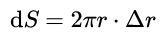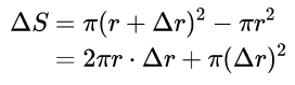 它的几何意义也很清楚:这就是一个长为2πr(这刚好是圆的周长),宽为Δr的矩形的面积,好像是把这个圆“拉直”了所得的矩形的面积。