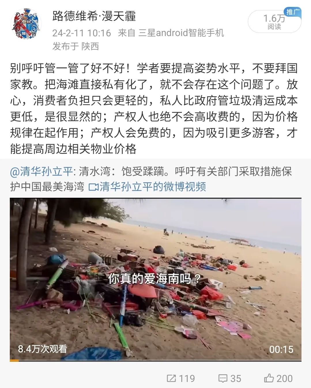 别胡扯这些了好吗?私有化,老百姓能去沙滩吗?