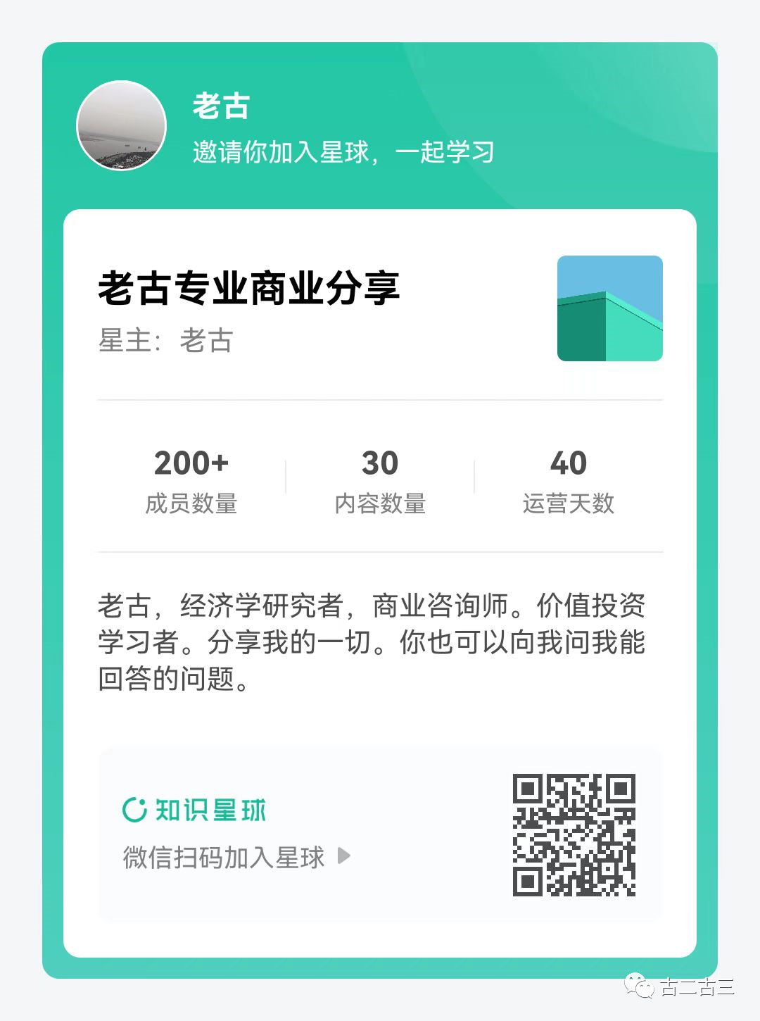 老古开通了知识星球,主要分享商业与投资领域的相关个人实践。