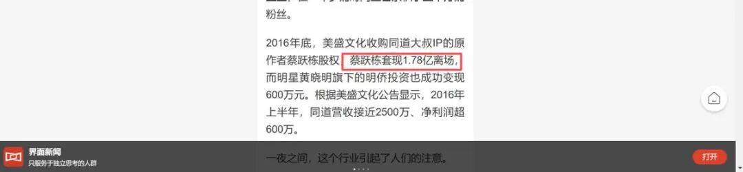 头部玄学IP"同道大叔"早在2016年就被上市公司以2.18亿元收购,创始人套现1.78亿元实现财富自由。