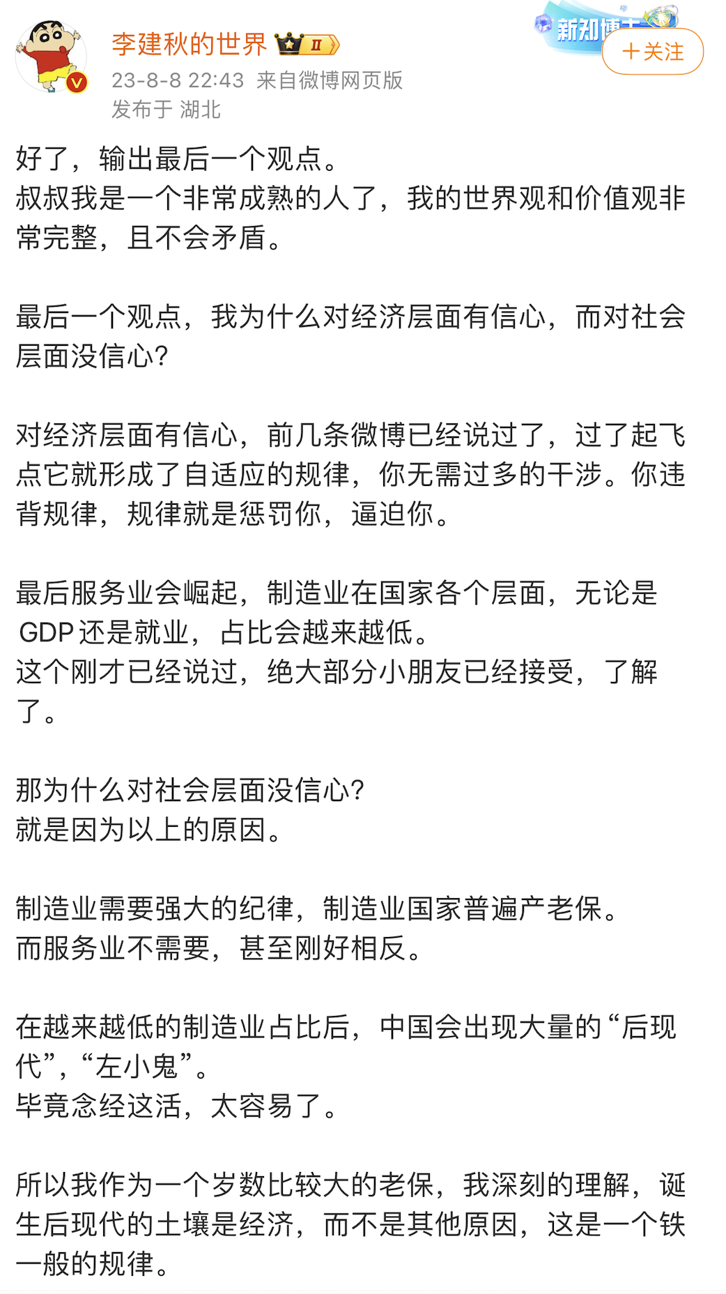 最可怕的事就是大家不知道将来会发生啥,不投资不消费,工作岗位不增加,也没有研究型岗位,大学生的知识没啥用武之地,雇主也不会为了他们的学历支付工资,找不到工作,那只能是劝大学生去做初中毕业生做的事了。而且这种预期会被加强,大家别忘了,接下来每年我们都有上千万毕业生,还有每年两千万的退休老人。