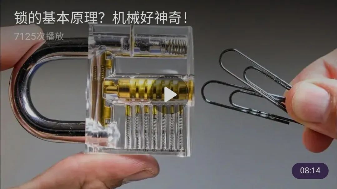 网上还有更多的视频教程,尤其是采用培训锁匠的透明锁演示,初学者也可以明白结构和操作道理,就很容易打开。