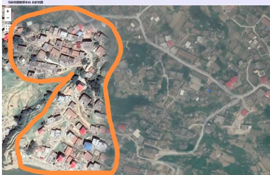 比如我们在影像图上看到这样一张照片,都是农民建房,那么根据国土调查,外面会有一个建设用地范围线。