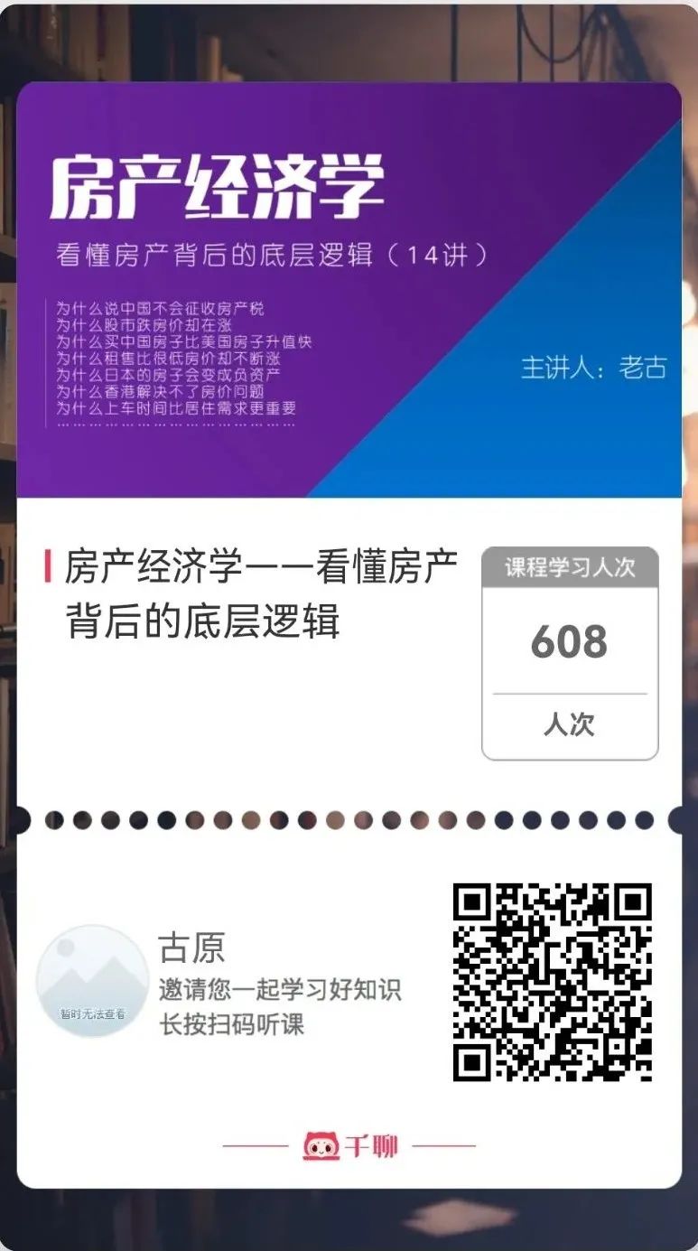 我也已开发一套课程《房产经济学——看懂房产投资背后的底层逻辑》,共14节课,目前已录制完5节,定价198元,会在近期录制完成。