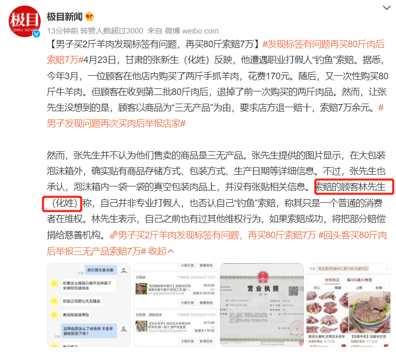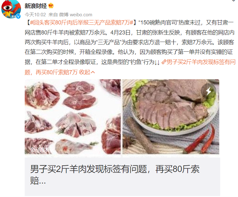 我相信大部分人看到这样的案子,凭常识都会做出一个朴素的价值判断,这难道不是动机不纯?难道不是敲诈勒索?事实上,在重庆王女士案判决后,中国法学会消费者权益保护法研究会副秘书长陈音江也表示:“从情感上,我也非常同情这位重庆商户。”她并没有销售假冒伪劣商品,她就是一个小作坊,而且具有合法的经营资质,代价太大了。那为什么常人觉得违背了常识,法学家都觉得同情,法院却会这么判?《中华人民共和国食品安全法》第六十八条:“食品经营者销售散装食品,应当在散装食品的容器、外包装上标明食品的名称、生产日期或者生产批号、保质期以及生产经营者名称、地址、联系方式等内容。”以及,《中华人民共和国食品安全法》第一百四十八条第二款:生产不符合食品安全标准的食品或者经营明知是不符合食品安全标准的食品,消费者除要求赔偿损失外,还可以向生产者或者经营者要求支付价款十倍或者损失三倍的赔偿金;增加赔偿的金额不足一千元的,为一千元。但是,食品的标签、说明书存在不影响食品安全且不会对消费者造成误导的瑕疵的除外。两个案子如出一辙的是,重庆王女士和甘肃的张老板,都是在外面的大包装箱上,贴有商品存储方式、包装方式、生产日期等详细信息,但是在一袋一袋的真空包装上,并没有张贴相关信息。就因这样一个疏漏,付出了10倍赔偿的巨大代价。重庆王老伴和甘肃张老板的行为合理吗?合理。你去山西卤肉店买卤肉,去烧鸡店买烧鸡,去瓜子店买瓜子,最多会问一声“新鲜的吧?”,然后称完就拎个塑料袋回家了,那塑料袋上不会有任何标签。你路过一片大棚或者果园,路边农民摆摊卖草莓和樱桃,买完就走,绝不会认为它们是“三无产品”。重庆职业打假人邵某和甘肃的林某(化姓)的行为合法吗?合法。三方行为都没有什么问题,怎么就会出现争讼和其中一方遭受如此大的损失呢?