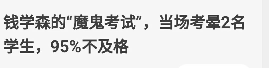 当年中国科技大学创办不久,招了一群全国最顶尖学生,一次考试时钱学森出的一道计算卫星轨迹的考题:「从地球上发射一枚火箭,绕过太阳再返回地球上来,请列出方程式求解」。这是美国学校里的常规习题,钱学森只是照搬美国的题目。