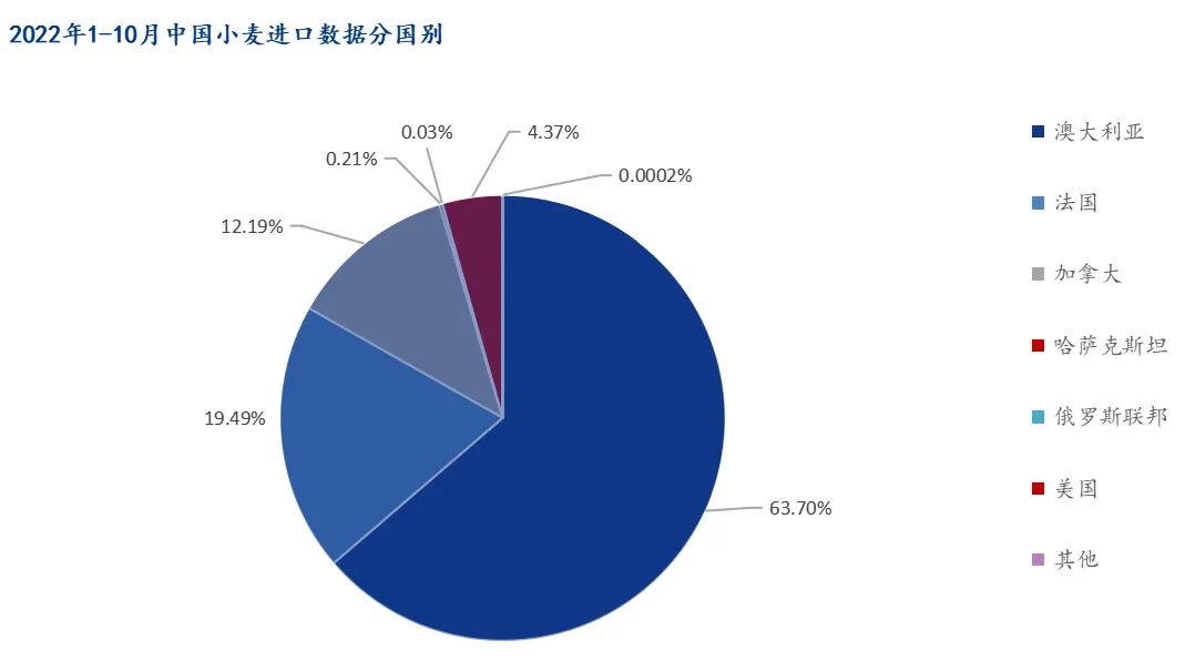 其中,累计进口小麦780.41万吨。从澳大利亚进口小麦497.16万吨,占比高达63.7%。澳大利亚也是中国第一大小麦进口国。