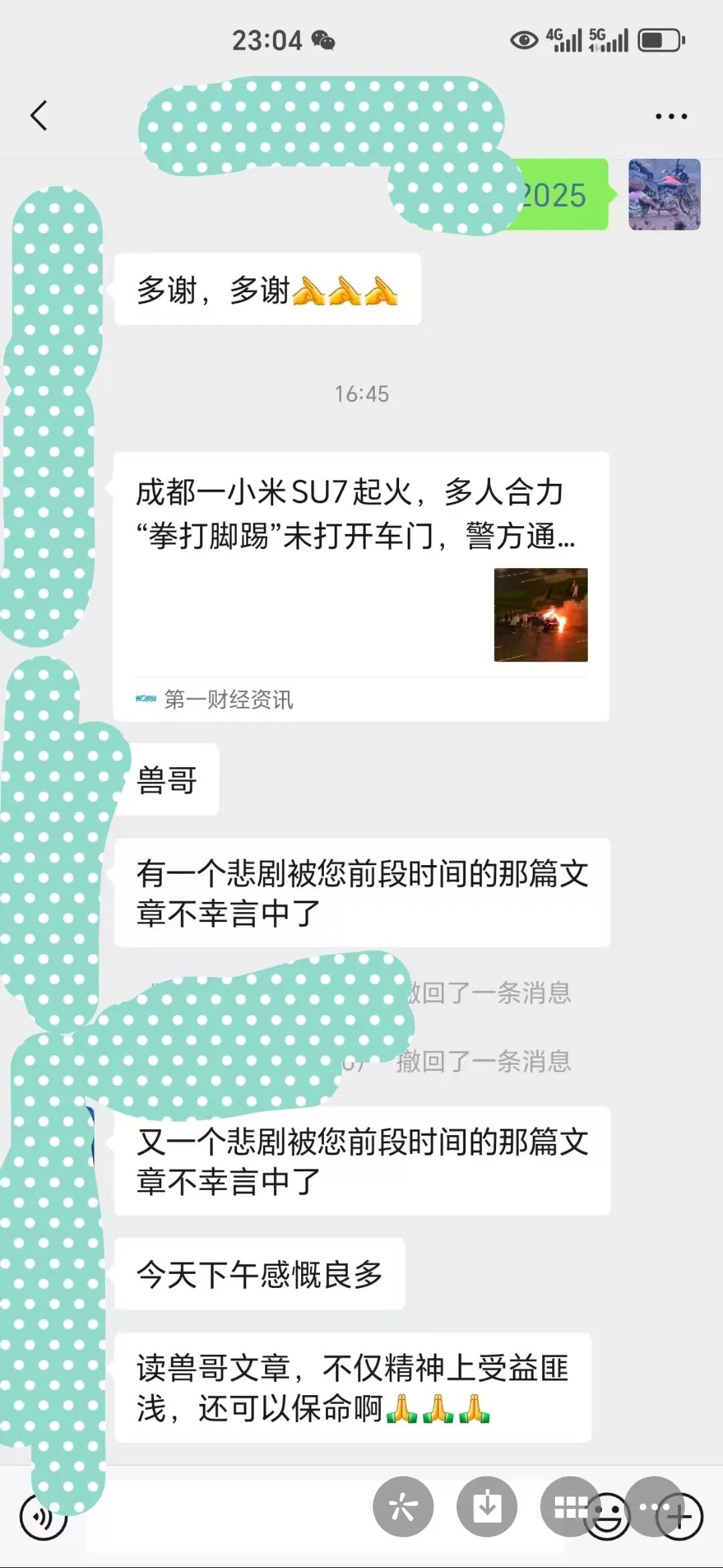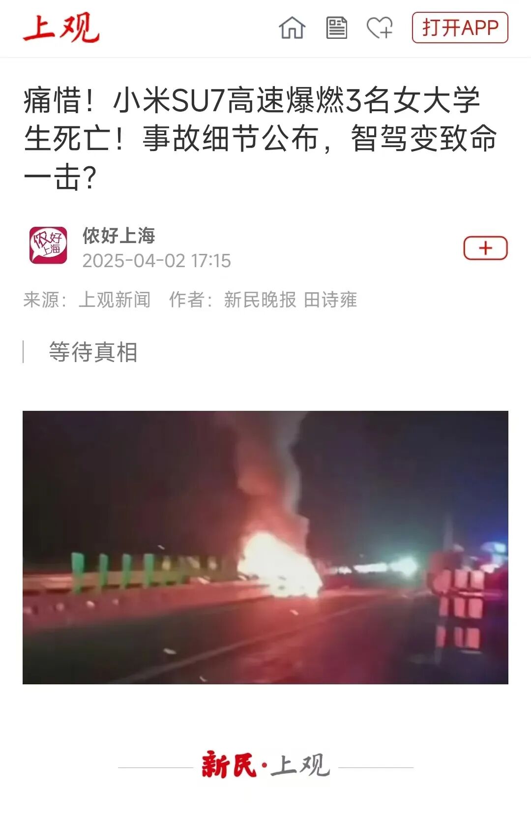 “雨田总也发声了,没记错的话,这应该是为数不多针对事故发生的车企高管吧?其实,在调查报告没出来之前,这事故本身跟xm也没有直接关系,就是车辆是xmSU7罢了……”