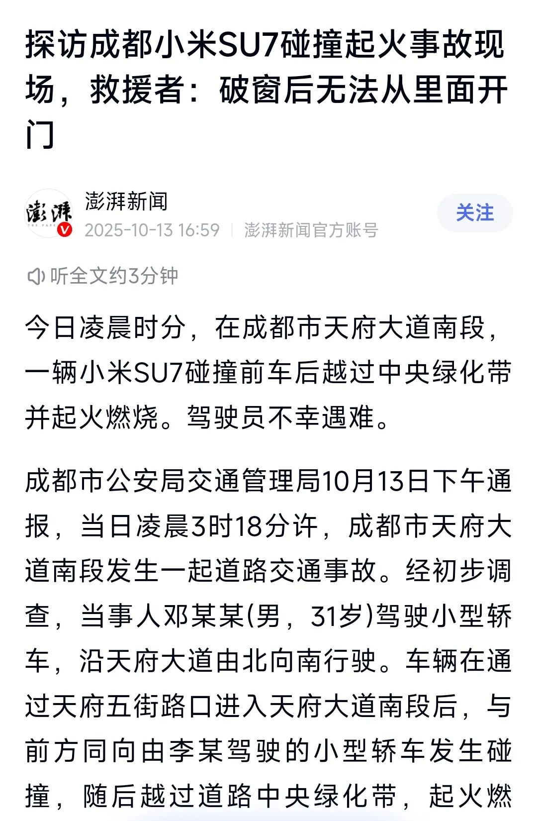 本次成都电池车的悲剧,还有一个值得注意的苗头,那就是很多媒体特地强调司机涉嫌酒驾,酒驾当然不对,但是他酒驾跟车门打不开有什么关系?酒驾是他的错,车门打不开是车企的错,这两者能混为一谈么?你强调他酒驾是什么意思?他酒驾难道可以减轻车企的责任?洗地有这样洗的吗?你的文笔真是能写出54°的文字,比茅台还高一度!是这个逻辑吗?我相信司机宁肯被追究酒驾责任也不愿意以生命的代价逃避掉酒驾责任。