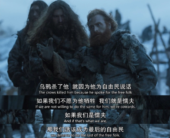 野人首领托蒙德就说了,你不去,那你就是懦夫,那你活该灭亡。