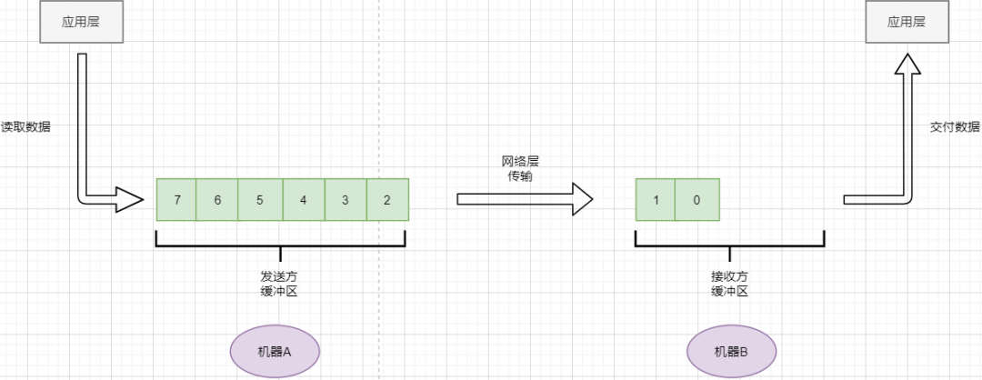 发送方需要根据接收方的缓冲区大小,设置自己的可发送窗口大小,处于窗口内的数据表示可发送,之外的数据不可发送。