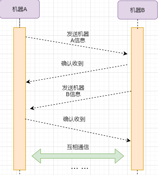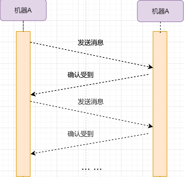 机器B的确认收到和机器B信息可以进行合并,减少次数;而且发送机器B给机器A本身就代表了机器B已经收到了消息,所以最后的示例图是: