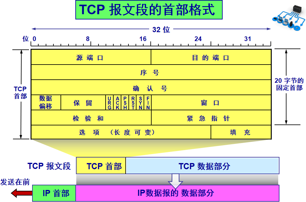这张图是来自一位大学老师的课件, 非常好用,所以一直拿来学习。最下面部分表示了报文之间的关系,TCP数据部分就是应用层传下来的数据。