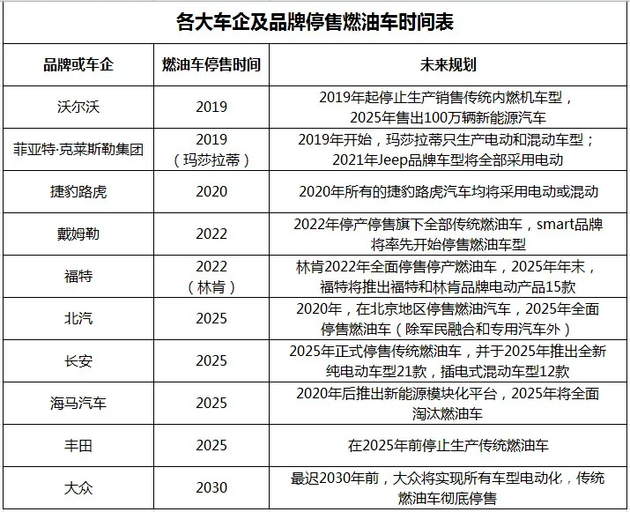 而部分车企为了响应该政策,也主动公布了停产、停售燃油汽车的时间表。 其中,早在2019年起,沃尔沃就正式停止生产销售传统内燃机车型;玛莎拉蒂也宣布自2019年开始,只生产电动和混动车型······