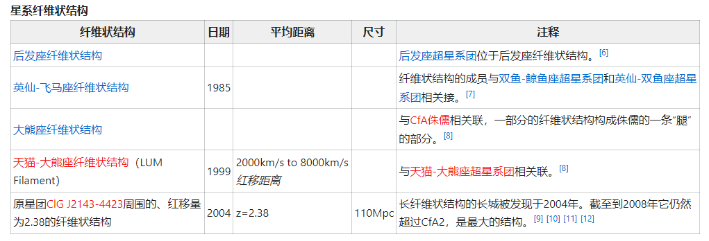 我们假设白色的部分不参与力的作用,或者说力的作用比较弱所以可以忽略,只有黑色的部分会互相排斥,每一个黑色像素对另一个黑色像素都有恒定的排斥力。好,学过中学物理的同学就可以开始脑补了,它们两个会怎么互动?对,他们会因为排斥力而分开,还有呢?考虑考虑力矩的问题,对啦,它们会开始旋转!而且它们旋转的方向一定是相反的!以上图为例,左侧那个费米子会开始顺时针旋转,而右侧那个费米子一定会逆时针旋转,他们的旋转方向一定不可能相同,就算初期刚放到一起的一瞬间旋转方向相同,但相互作用也会迫使其中的一个迅速改变旋转方向。这,就是泡利不相容原理的极简版科普解释。 人们最早发现这个现象是在原子光谱当中,很多同学应该还记得分光镜可以分出不同的光谱线来,但其实每一根光谱线又可以细分成两根距离很小的谱线,这就是两个同层但自旋不同的电子向下跃迁发出的谱线。它们两个总是不同,永远都不同,就好像有阴必有阳,有正必有反一样,我们在所有的光谱线中都可以、且必然发现这种谱线的分裂现象。对泡利不相容原理的解释就是这样。但这种驱动力必然不会是万有引力或者电磁力,因为这两种力的传播速度不够,不足以解释随后的量子纠缠问题;驱动力也不可能是强相互作用或弱相互作用,除了传播速度不够之外,粒子间的空间尺度也太大,不足以引发这两种作用,并且也从来没有观测到因此而产生的核反应。所以,其驱动力就一定是一种比电磁力更长程且传播更快的力。一阶力虽然满足更长程且传播更快的条件,但它暗示着量子纠缠是有距离极限的,这不太符合我的审美,所以姑且就把这个任务安排给了零阶力。但我必须承认,这只是一个非常粗糙的假说而已,除了方便解释既有现象之外,并没有坚实的证据,被推翻了也不奇怪。对于这种非常粗暴的类比而言,未尽事宜肯定还有很多,如果有搞物理的人因此指责我是一个神棍,我不会进行任何反驳,我不是在写学术论文,我的本意也就是进行一种启发而已。现在我们来看一个不是那么神棍的问题——宇宙为什么会拉丝?这个现象的学名叫做宇宙的“大尺度纤维状结构”,先直接上两张来自于维基百科的表吧。 宇宙从来都不是均匀的,而是具有大量的空洞,在这些空洞的边缘,大量星系和星系团组成了纤维状的结构,这已经是宇宙观测的基本结论,尽管暗黑教徒很不愿意提及这一现象。当纤维过于粗壮密集的时候,它们会形成类似于一块长条平板的形状,这些形状被称为“长城”,宇宙中已经发现多个长城,自豪吗?细的纤维就像是丝线,而长城就像是这些丝线织成的布,值得注意的是,在10亿光年以上的尺度上,有线也有布,但是,没有团块!没有团块!没有团块! 这张图是经过艺术加工的,丝肯定没有这么明显了,但大概是这个意思。 这张图就比较写实一点,仍然可以看见明显的纤维状结构。宇宙为什么会拉丝?如果让我们的天体物理学家来分析,可能又需要动用复杂的高等数学来计算、运用昂贵的超级计算机来模拟,但我想,完全没有必要搞得那么复杂,因为每一个成年人对此都有经验。某种液体,当它没有受到外界拉力的时候,由于内聚力,它就会静静地缩成一团,当且仅当一个外来物体沾上它并且往远处移动的时候,才会产生丝,所谓拉丝拉丝,没有拉就没有丝!根据物理学第三原理,丝,作为一种结构,能够稳定存在,预示着必然存在两种相反的力:一种是内聚力、吸引力,以避免丝的断裂,这在宇宙尺度就是一阶力。二阶的传统万有引力完全不可能承担这个任务,因为它的力程太短了,根本不可能是星系间的有效粘合剂。无论怎样威武雄壮的泰迪,它的极限也就是驾驭一只金毛,而绝对不可能驾驭一头大象,因为——它太短了。严肃地注:上文的它是指万有引力,其随距离衰减太快,所以有效力程远远短于一阶力。 另一种就是拉力,或者说排斥力,还需要论述么,都成丝了,肯定有力在拉啊,如果不是神之舌头或鬼之手指,那剩下唯一的解释就是,星系间存在着一种普遍性的排斥力。这,就是我提出来的零阶力。拉丝现象,不仅仅存在于宇宙宏观尺度上,其实也存在与星系内部尺度上。我们银河系的悬臂,也可以视作一种拉丝,银河为什么不作为一个大体均匀的圆盘而旋转呢,为什么非得分成几条悬臂呢?很有可能,银河系的内部还是存在着某种微弱的互相排斥之力,就像人为什么拉帮结派,还不是一些人看不顺眼(排斥)另一些人。甚至大星系的星系核,往往也不是圆形,而是一根棍子的形状,这被称之为棒旋星系,我们的银河系也是一个棒旋星系。你看,银河系中间的圆形的洞里就有一根炙热的棒,而且还在不停地转动。我不敢说,星系核的棒也是零阶力作用的结果,因为这个尺度实在是太小了,一般而言零阶力还十分微弱。在我看来,这种形状更多的因为永潮力造成的,而零阶力就算发挥了作用,也是非常次要的作用,而永潮力的内容将放在下一章来讲。同时,银河悬臂这种丝状结构也和宇宙大尺度的丝状结构有所不同,在这种尺度下,泰迪从非洲大草原回到了熟悉的狗场,万有引力已经足以胜任维持丝状结构的内聚力、吸引力的角色。 零阶力的存在,几乎是不言自明的,其提出毫不奇怪,不需要任何天才或创意,奇怪的反而是这么长时间以来居然没有任何学者提出,我只能说,他们可能都瞎了吧。即便是在宇宙大尺度结构