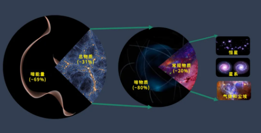 横轴表示某恒星与星系中心的距离,纵轴表示该恒星绕星系中心旋转的速度。对整个星系而言,这叫自转,但对具体恒星而言,这叫公转。曲线A是根据万有引力理论计算得出的恒星公转速度曲线,即离中心越远,自转速度越慢。你放心,星系密度由中心到边缘的变化、黑洞等大质量天体、星际气体和尘埃、以及微弱的相对论效应都已经被考虑在内。这种速度分布与太阳系内的八大行星的旋转速度分布(下图最右一列)类似,越远越小,大致与距离的平方根成反比。 而曲线B是实际观测到的恒星公转速度曲线,这不是哪一个具体星系的曲线,而是绝大部分的螺旋星系都是如此。曲线B具有两个典型特征:第一,曲线右侧总是一条长长的水平的直线。这表示,恒星离星系中心的距离超过一个阈值之后,其公转速度就不再发生任何改变,几乎是一个常数,直到星系边缘。第二,曲线左侧也近似于一条直线,陡然拔起。这表示,恒星离星系中心的距离没有超过阈值时,其公转速度线性增长,或者换言之,其角速度几乎不发生任何改变。更通俗地讲,距星系中心较近的一小片区域内,所有恒星像一个刚体(固体)圆盘一样,以完全相同的周期围绕中心运转。这种诡异的速度曲线在上世纪三十年代就已经被发现,但学术界完全无法解释这种现象,然后一个瑞士人提出,或许星系中存在大量看不见的物质,使得外围恒星受到的引力比预期的要大,所以旋转速度也比预期的要快。这种看不见的物质,就是所谓的暗物质,之后为了解释一些具体的观测现象,又提出了热暗物质、冷暗物质等等一大堆假设。 暗物质的假设目前被广泛认可,因为人们可以通过引力透镜效应,观测远处的星光在经过星系和星系团时的弯折程度,并据此测算出相应天体的质量,虽然这种测算往往错得离谱。专家们的计算结果表明,我们此前大大低估了所有星系的质量,那些“看不见的质量”比看得见的质量要多得多,据估算,暗物质其实占到了物质总量的80%以上。暗能量的提出则源于宇宙加速膨胀的事实,但我用元力来解释宇宙的加速膨胀。当天文观测发现宇宙在加速膨胀之后,科学家们必须拿出一个颠覆性的解释。因为在已知的各种力和效应当中,没有任何一种是可以使宇宙加速膨胀的。任何一个正在膨胀的物体,如果其中各部分之间有引力,那么它只能减速膨胀乃至于收缩;如果其中各部分之间没有作用力,它也只会惯性匀速膨胀;加速膨胀就意味着,宇宙中具有斥力,且这个斥力显著压倒了万有引力。于是暗能量就出炉了,并衍生出各种理论和模型,如宇宙常数理论和基本标量场理论,但这些理论有一些共性——均匀和负压。一般认为,暗能量相当均匀地分布于整个宇宙当中,并且提供着持续的排斥力,在宇宙膨胀的过程中,物质(包括暗物质)的密度当然是持续降低的,但暗能量的密度却可以保持不变,甚至反而增加,所以宇宙的膨胀速度会不断加快。据所谓专业人士测算,暗能量在整个宇宙的质能当中占据了非常大的份额,大体在70%左右,不同的理论测算值会有几个百分点的偏差。 按照接受度较高的主流理论,在我们的宇宙中,暗能量占到了68.3%,暗物质占到了26.8%,而我们所熟知的正常物质只占到了4.9%。但你得知道,目前关于暗物质和暗能量的一切理论都仅仅是推测,一切数据都只是来自于模拟测算,而且要命的是,这些推测和模拟经常出现与观测值差异巨大的情况。目前的暗物质理论至少面临三个层次的不自洽:第一,在星系层面。各种螺旋星系中的普通物质都是分布在一个圆盘上,但暗物质的分布却是一个巨大的球体,被称为暗物质晕,星系圆盘沉浸在这个暗物晕当中。如果暗物质与普通物质所受引力的性质和规律完全一样,那他们的空间分布和运动方式自然应当趋同,没有任何道理出现这种巨大的差异,不要忘了这些暗物质的质量十分巨大,达到了正常物质的5倍。第二,在星系团(由多个星系组成)层面。专业人士们现在可以测算各个星系的暗物质质量及其总质量,但当观测对象扩大到星系团时,却发生了十分尴尬的情况。当科学家观测星系团时,发现其引力透镜效应远远大于理论计算值,这可以近似地理解为,当计算星系团的总质量时,发现总质量比各个星系质量加起来要大个10倍以上。这是2020年通过哈勃望远镜得到的观测结果,发表在《Science》上(M. Meneghetti etal. An excess ofsmall-scale gravitational lenses observed in galaxy c.lusters. Science. Vol. 369, September 11, 2020, p. 1347. doi: 10.1126/science.aax5164.) 下方棕色曲线表示模拟结果,其他曲线表示对多个星系团的观测结果,注意纵轴是对数坐标而非线性坐标,这说明实测结果是观测结果的10倍以上。他们果断引入更多的海量暗物质,但喜感的是,在解释星系自转曲线的时候,他们已经假设了星系周边的暗物质晕是有边界的,不然就不叫暗物质晕了,而应该叫暗物质汤或者以太了,然后他们居然又能在虚空中塞入10倍以上的暗物质。第三,在全宇宙层面。任何质量或能量,对宇宙空间大尺度曲率都会有贡献,通过对宇宙微波背景辐射的观测,科学家可以测出宇宙目前的曲率,并因此计算出全宇宙理论上的总物质量。但遗憾的是,我们能够测出的全宇宙的物质量(已经包括了暗物质)只有这个理论宇宙总质量的30%,也就是说大量的物质又不知道到哪里去了,于是他们就只好认为,剩下的70%左右统统都是暗能量。上述三点不自洽其实