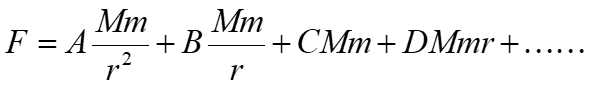 这样一个展开,因为A远大于B远大于C远大于D……,所以在r足够小的时候,BCD这些项都可以忽略不计,但随着r不断增大,B就逐渐取代A,成为了主要因素。 在星系尺度上,我们就姑且认为