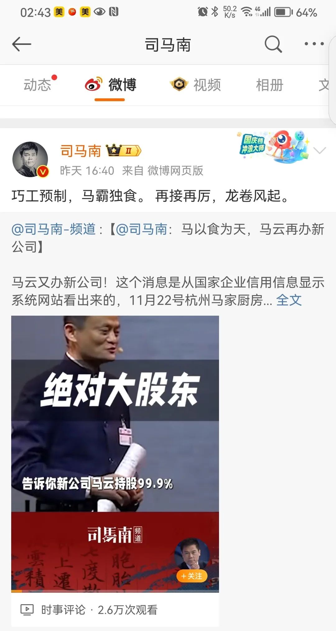 他利用预制菜最近广受批评的民粹情绪,将马云拉上,引导他的粉丝又展开了一轮对中国企业家的攻击。