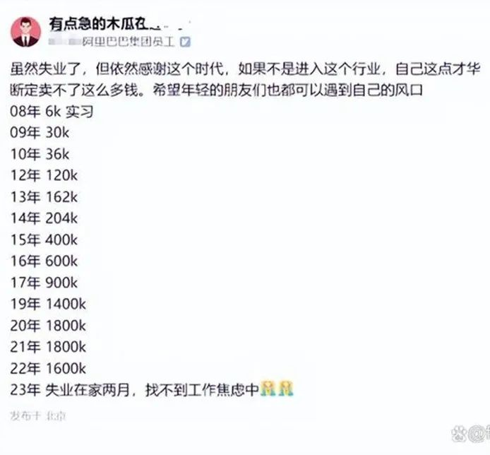 这两天,还有一位阿里被裁员工的网上言论火了。