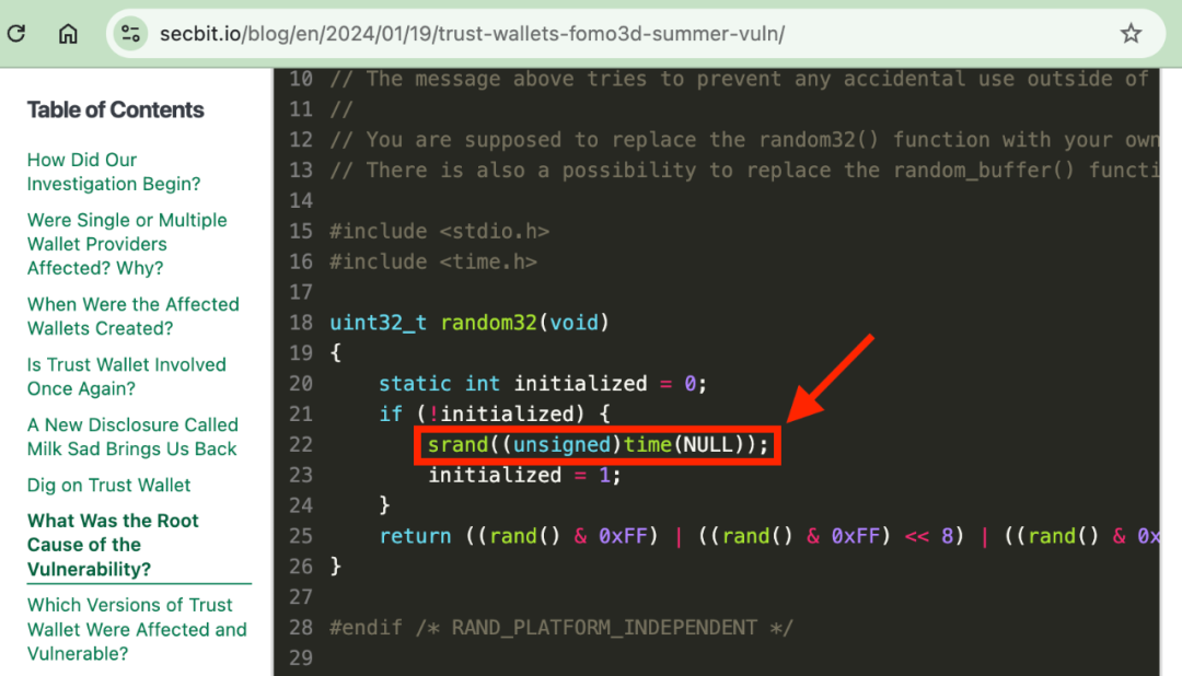 问题六:Trust Wallet生成的私钥为什么被猜到了?