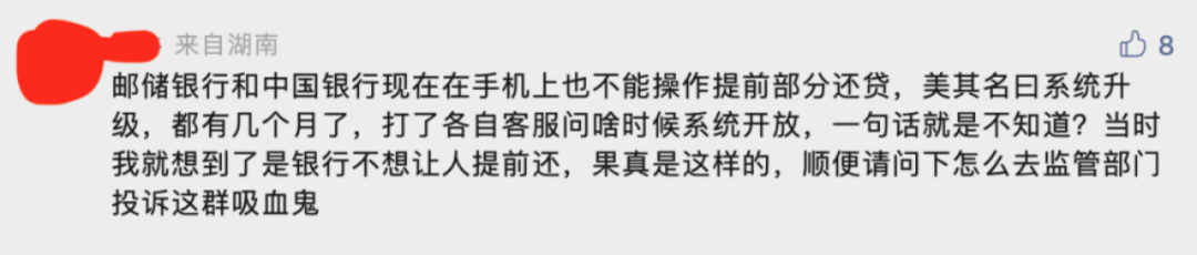 哥几个都是19-20年买的房,当初市场还算火爆,绝大多数新房摇号才能买到,开盘当天热闹非凡,锣鼓喧天鞭炮齐鸣,房子靠抢,楼层靠捡,全看别人给你剩下了什么货色。如今要交房了,哥几个看了看周边二手房的成交,从满心踌躇到一脸惆怅。成交量下滑太严重了,价格也从2年前,就一路下跌。算上交易税费,最后还要倒贴钱。当初买房,最大的疑惑,就是贷款好呢,还是要全款买房更划算。房价不涨反跌,各自的企业经营也是摇摇欲坠,但是贷款却是恒定不变的。哥几个商量了半天,还是决定提前把贷款还掉。免得以后收入没了,还得背上债务逾期的罪名。提前还贷也能人传人。北京青年报说,提前还房贷的人数太多,北京的银行,门口都排期了长龙。今年提前还贷的人数,比以往,增长了20%。有的网点,单月的提前还款金额,比以往正常的月份,翻了一番还多。有个朋友,做深圳某支行的行长,他们支行,单月提前还款的金额已经达到了8000万元。因为有了利率更低的贷款,当然要把高利率的房贷,给替换掉。大家做的房贷利率,很多都是在利率顶峰办下来的,动辄都要在5.2%以上。虽然有很多人可以拿到9折之类的贷款优惠,LPR也经历过几次下调,但是都是撒了点毛毛细雨。但是最近,新批了大量的经营贷款。最低能做到3.65%。相比房贷利率,能省下不少利息。采访了某城商行工作人员,他说,名下有公司的人,会更乐意提前还款。还款之后,把房子做抵押,做经营贷。这样就把原本高利率的房贷给替换掉了。很多经营贷,最长能借20年,跟房贷期限差不多。并且可以选择先息后本,就是每个月,只需要还利息就行了。到期后,再一次性偿还本金。这样一算,利息比房贷低了不少,还款压力也小了不少。举个例子:如果你借了200万的房贷,还款期限是20年,去年房贷利率最高是6.3%,那么每个月的月供,就是22015元。但是,如果你办理的是利率3.7%的经营贷呢,还款方式是先还利息,再还本金。那么每个月的月供,就是9250元。今年以来,房企暴雷了,民营躺平了,百姓缩表了,这下轮到银行了。大家都把贷款还掉了,银行收入哪儿来,吃谁的去?银行主要靠存贷利息差赚钱,大家都提前还贷了,那不就把银行赚钱的结构,给冲垮了吗。前两天,交行出台细则,提前还贷,都要交本金1%作为补偿金。这在以前,大多数银行在房贷还款1年左右,就会免收违约金。最终交行还是顶不住舆论压力,把公告撤下来了。除了交行这种做的比较绝的办法以外,还有很多银行,用的软性阻挠措施。之前有的房贷还款是可以线上操作的,现在告诉你,必须来线下,并且要提前十几天,甚至是半年之前预约。本地客户还好,无非就是多跑一趟,还款手续也不麻烦,小半天就能处理完。但是外地的投资客,可就麻烦了,还得买机票,做核酸,请假,订酒店,这一来一回的,耽搁的可就不是一两天的功夫了。还有的银行,做法就很直男。直接告诉你,提前还款的额度,没有了。记得滴滴程维曾经说过一个故事,当初滴滴快的补贴大战,一天晚上出租车司机发工资集中取现。耿直的程序员,在页面上直接显示了“余额不足”,恐慌情绪迅速蔓延。程维当晚找朋友,东拼西凑了1000万,才勉强把大家的钱还上。后来滴滴规定,如果再遇到这种情况,就显示“系统升级”。如果你看到了某平台,显示系统升级,要多留一个心眼。比如有网友就说,现在邮政储蓄和中国银行,也不能在手机上操作提前还贷了,显示“系统升级”。如果你想提前还款,但是银行磨磨唧唧不给办,我给你支个招,相当好使。我一朋友试过之后,一投一个准,一周时间就走完了全部流程。提前还贷,只不过是个小插曲。在下面这个事面前,不值一提。《大衰退》的作者,辜朝明在一次采访里说,1995年起,日本企业陷入了集体犯病模式。但是企业主们,不但不爱借钱,反而特别积极地去还贷款。从外部看,这段时间,日本每年的名义GDP,始终停滞在450-500万亿日元之间。尼采的《善恶的彼岸》中有句话,“凝视深渊过久,深渊将回以凝视。”这时候再注视一下我们自己,和当年的日本,是不是也有点类似?社融是什么?就是整个社会的“借钱”总量(借钱的方式包括贷款,股票,债券)。我们怕投资亏损,所以要储粮过冬,对未来预期悲观,认为未来的日子,不会更好,只会变差。在公司担心失业降薪,回到家里呢,还有房贷的压力。手上有钱的又找不到更好的投资渠道,还要还贷款利息。那不如把贷款先还上。这样没有了房贷压力,每年能省十多万利息。经历了两年多的口罩,再想想以前的p2p,股市,村镇银行,期房烂尾。眼看着房企接连暴雷,政策又不见放松,眼前的事还处理不完呢,看不到房价上涨的迹象,那就躺平吧。反映在社会融资总额上,就是增速很低,有时候甚至为负。今年毕业生人数是1000万,但是数据显示,到目前为止,找到工作的人数,占比是很低的。想要刺激经济,我们试过一些办法。比如直接扶持企业,给企业降息。就像一开始咱们说的,大家申请了经营贷,为的不是要经营企业,是要去买房还贷。因为你救了企业,但是老百姓不敢消费啊。企业的东西卖不出去,那就没法生产。这个时候,就需要从另一个角度来解决问题,用魔法来打败魔法。虽然提前还贷的人很多,但是手里没钱,没有能力还贷的人,更多。房贷利率降低了,大家的月供压力变小,这样民间有钱了,消费也就刺激起来了。释放了消费需求。这个跟房地产的调控大方向,是不