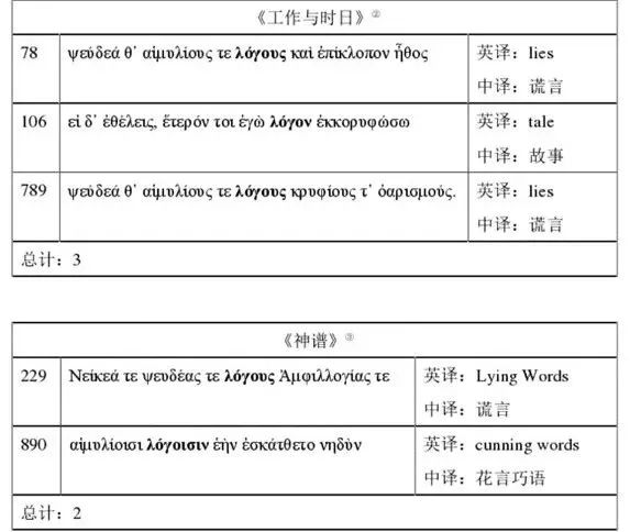 王洛岚整理的赫西俄德(约公元前八世纪)《神谱》、《工作与时日》中的“逻各斯”