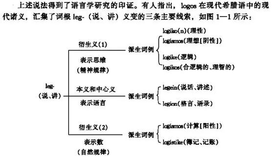 “逻辑”一词,源于希腊文logos(λόγος,“逻各斯”)。从词源学的角度来说,logos一词的本义,更多地和“话语”、“观点”之类的概念相关。Logos直接来源于希腊文的légō,意思就是“我说”。在大致于公元前8世纪至公元前6世纪成型的荷马史诗《伊利亚特》和《奥德赛》中,“逻各斯”指代的都是“话语”、“言辞”,与后世逻辑一词隐含的“真理”、“理性”意味无涉。在另一位最早的古希腊诗人之一赫西俄德的笔下,“逻各斯”有时作“谎言”解,有时作“故事”解,有时作“花言巧语”解,仍然都指向话语言辞,而且往往带有“虚幻不真”之意①。到公元前五世纪到公元前四世纪,古希腊智者学派的哲人们也主要用“逻各斯”这个词语指代“话语”、“对话”、“论述”(参考柏拉图《普罗泰戈拉篇》、《高尔吉亚篇》诸篇)。