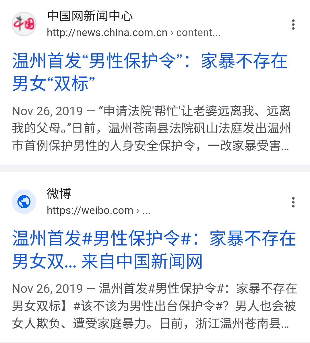 不过,温州也不是只保护女人,温州男人受家暴也是受法律保护的。2019年开始,温州法院就开始发「男性保护令」。