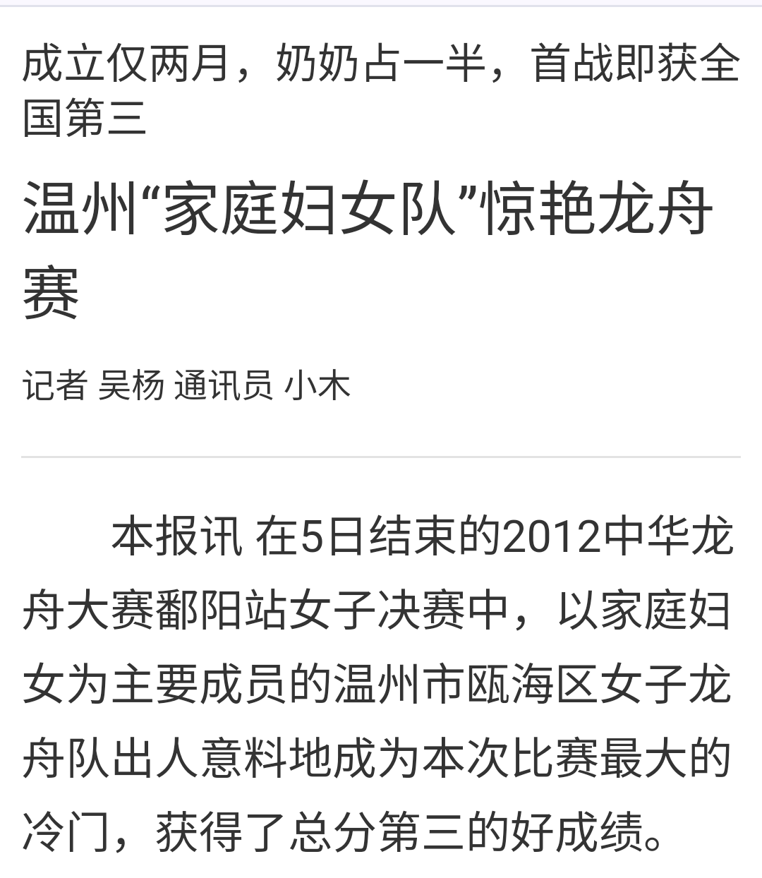 温州凤舟还是很剽悍的。当年一群温州大妈、奶奶组建的女龙舟就一鸣惊人。