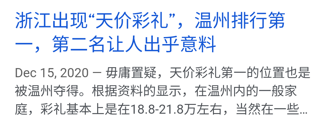 如果你看看一些网文,说到彩礼排名,或许会看到温州彩礼很高的说法。