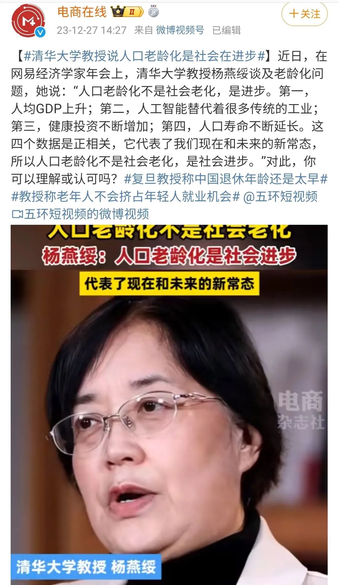 清华教授杨燕绥近日在网易经济学家年会上,就人口老龄化问题发表了以下观点:经济进步的一个结果就是人均寿命的延长。这在工业革命前后的变化中表现得格外突出。工业革命就是经济井喷式发展的一个里程碑,伴随着的结果就是人均寿命的不断增长。