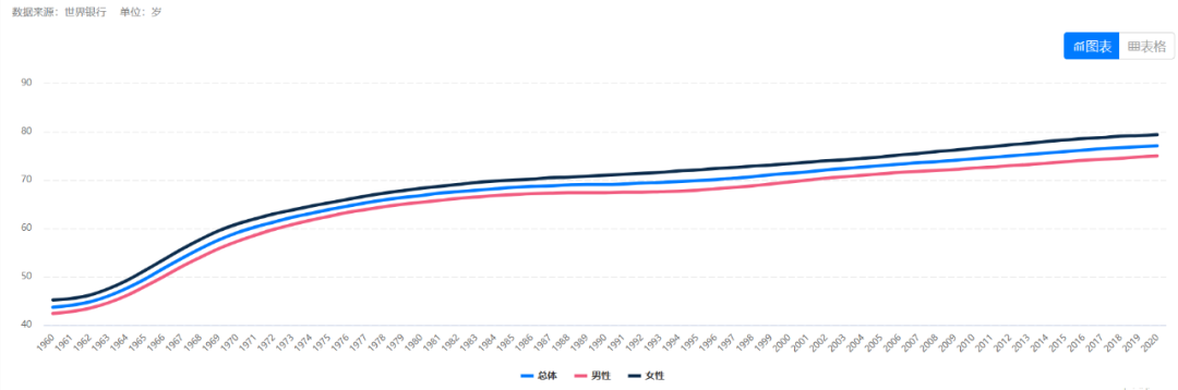 要知道,人的寿命总是有限的,那么边际上再提高一岁,都是非常困难的。从30提高到40很容易,但是从77提高到80,就非常难。这个道理很容易理解。从地域上看,经济发达的国家和地区,人均寿命远远高于经济落后地区。![]()