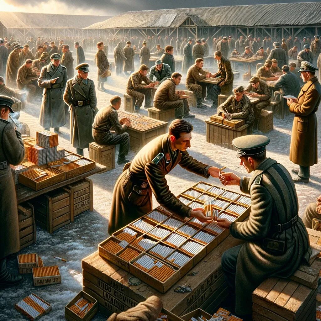 有趣的例子是二战时期德国战俘营里,香烟成了一种意外的货币。