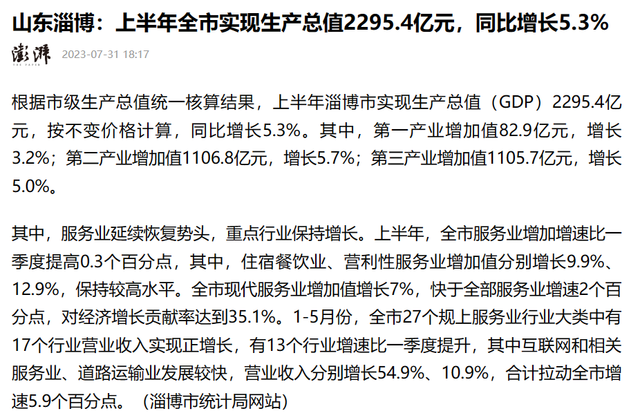 烧烤经济的热闹降温之后,前不久,淄博公布了上半年的经济运行情况。从数据来看,可能要让不少人有些意外了——上半年GDP为2295.4亿元,同比增长5.3%,跑输5.5%的全国大盘增速,也大幅落后6.2%的山东平均增速,增速位列山东倒数第三。都以为淄博火爆的流量,会反馈到经济运行上,形成一个爆炸的数据,结果却事与愿违,它甚至拖了山东的后腿。无独有偶,另一个被打上网红标签的城市鹤岗,一季度增速领跑全国的高光表现,也未能得到延续。一季度同比增长8.5%,上半年则掉到5.7%,呈断崖式下滑状态。淄博、鹤岗身上,散发着中国城市的“网红焦虑症”,它们面临转型困境,知名度和存在感却被流量效应激活。但只有当热度退潮时,我们才能更加冷静地评判,它们在流量经济中的得与失。整个2023年上半年,淄博无疑是最具关注度的城市,而且可能没有之一,霸屏热搜数日,“五一”期间到发旅客48万人次,创造了淄博的历史纪录。对很多外地游客来说,淄博特色的烧烤,带来了久违的烟火气;物美价廉的消费,不欺客宰客的市场环境,良好的治安,以及地方政府在烧烤专列等方面的主动作为,让外界看到了重视游客、开放友好的城市风貌。淄博集全市之力的资源投入,确实收获了一定的回报,这尤其体现在和旅游业直接相关的领域中。数据显示,2023年上半年,淄博的住宿餐饮业、营利性服务业增加值分别增长9.9%、12.9%。此外,消费层面,社会消费品零售总额639.4亿元,同比增长9.7%。这样漂亮的增长背后,是成百上千家餐饮店,在烧烤经济中实现了营业额的大幅上涨。开烧烤店,一度成为当地的风口创业项目。媒体报道提到,从2023年3月到6月,淄博新开张的烧烤店就超过了450家。然而,烧烤经济再热闹,产业规模再庞大,经济贡献率也比较有限,因为烧烤消费涉及的上下游很短。事实上,别说对整个地方经济了,哪怕是对服务业,都起不到太强的拉动效果:2023年上半年,尽管淄博的住宿餐饮业、营利性服务业高速增长,但整个第三产业,同比增长只有5.0%。抛开流量效应对城市知名度的加持效果,如果只看数据,那么我们甚至可以得出结论:淄博的这一轮爆火,在经济层面可能是徒有热闹罢了。淄博之外,以低房价著称的鹤岗,在翻红的同时也逆袭了一把。2023年一季度,鹤岗GDP同比增长8.5%,而黑龙江全省为5.1%,全国平均增速为4.5%。但这种领跑全国的势头,并没能得到延续,上半年增速只有5.7%,勉强跑赢了全国大盘,二季度鹤岗经济的颓势尽显。所以一个残酷的事实是,和淄博一样,流量经济的热闹,除了在线上给地方带来一些注意力资源外,并没有为地方经济注入太多的动能。网红城市营销,带动流量经济崛起,它直接利好文旅行业,而不管是淄博还是鹤岗,它们经济的基本支撑还是传统工业,旅游业的经济贡献率相当低。以淄博为例,在靠着特色烧烤和贴心的城市服务出圈之前,老工业城市,才是它更突出的城市属性。历史上的淄博,创造了工业史上的很多第一,但过于依赖重化工产业,形成了“传统产业占70%,重工业占传统产业70%”的畸形结构,面临资源枯竭的困境,在新旧动能转换中,这成为了城市的沉重包袱。淄博的问题,是传统低端资源产业正在加速淘汰,但缺少新兴产业来填补空白。烧烤经济的出现,看似带来了火爆的流量,实际上远远无法补上产业转型的巨大窟窿。鹤岗的遭遇类似。它一季度、二季度的经济波动,是因为受到了煤炭产业、资源价格波动的巨大影响。低房价带来的流量和人气,就贡献度来讲,在整个经济层面几乎可以忽略不计。在淄博火爆时,一些批评或者呼吁不要捧杀的声音,很容易被湮没在点赞声中,但高挂热搜不可能是一座城市的常态,流量经济到底挣不挣钱,还是只能为城市赚一些吆喝,它需要的是冷静、理性的思考,甚至是多泼一点冷水。比如,值得我们思考的是,经济属于低于预期,是否说明淄博模式存在致命缺陷?正如有观察者提到的,城市发展要靠大量外来消费去推动时,就容易形成潮汐现象,这对旅游经济运行,对城市产业链、供应链发展是不利的。大量的人力物力投入到烧烤相关产业中,本身打破了地方资源流动的稳定、平衡状态。淄博烧烤火爆时,当地形成开店潮;热度下降后,当地又出现了关店潮。这种不稳定的状态,资源要素错配,是否也是经济不振的一个原因呢?在社交媒体、短视频时代,相较于大城市自带流量的属性,这类中小城市面临人口流失,存量人口中老龄人口占比相当高,缺少朝气和活力;产业结构层面,以传统资源产业为主,又显得太老太笨重。因此它们有着深刻的流量焦虑,希望抓住一切机会,借助互联网出圈,一炮走红,让自己年轻化、有网感起来,在城市竞争中更有存在感,能吸引年轻人流入,吸引资本来投资。但事实上,一座城市的翻盘之路,押宝在成为网红城市上,注定是希望渺茫的。像杭州、成都等新一线城市,之所以能持续走红,前提是有比较扎实的产业基础。所以最让人担心的是,一些存在转型压力,缺少存在感的小城市,在淄博的样板下,为了撬动流量而进行用力过猛的投入,把资源都集中在一些低效、带动力弱的领域中。在某种意义上,淄博经济低于预期,还是一种干预式思维的结果。看到烧烤经济有流量,政府就大手一挥,调动一切资源顶上去,就跟过去调动一切要素搞资源产业、化工产业一样。当然,淄博仍然是幸运的。这一轮烧烤热潮,大大增加了它的知名