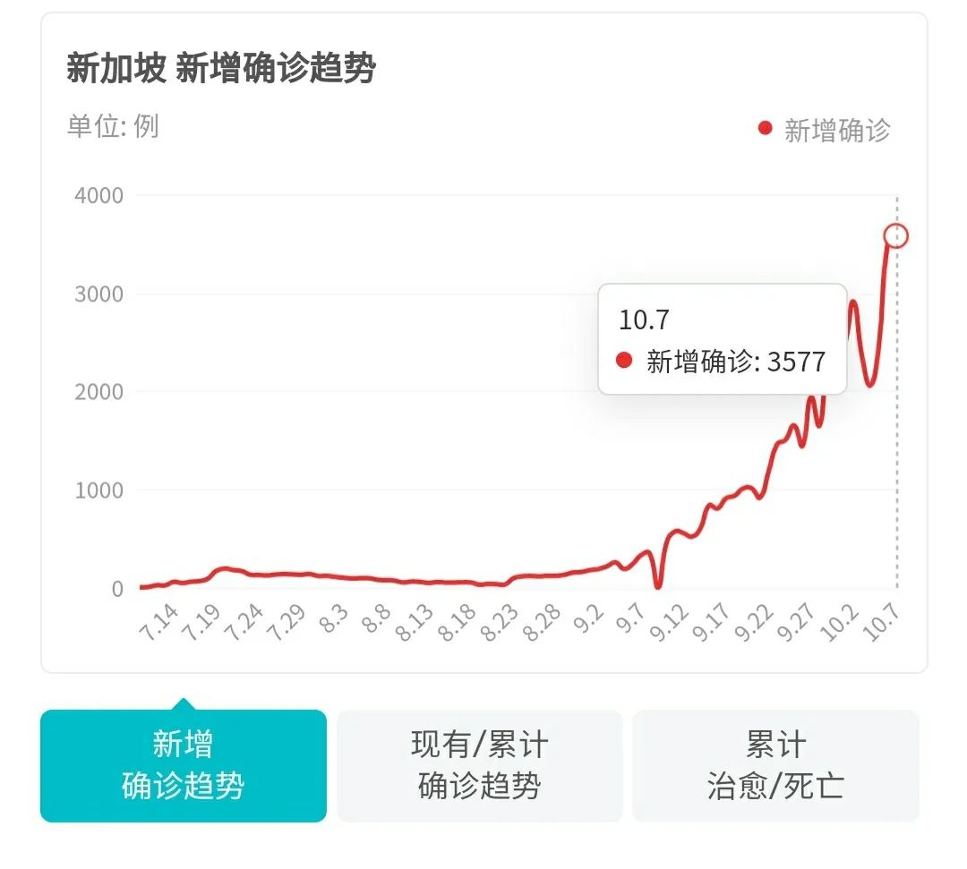 新加坡是从「清零」到「共存」的典范。从原本每天几个人到十几人感染,增加到最近每天三千多人感染。对于一个人口只有武汉一半的小国家,每天三千人感染绝对算得上是一个大数字。