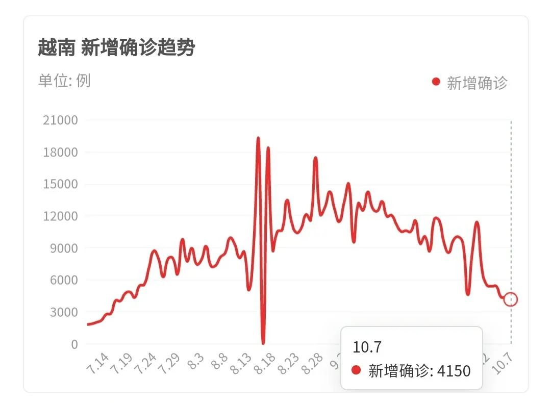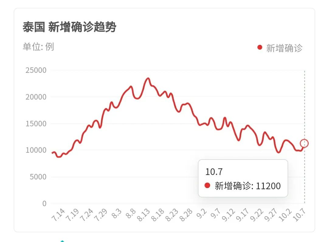 但是过了高峰,很快逐步下降,从10月3日开始,每日新增开始低于一万人,平均每天新增病例八千左右。