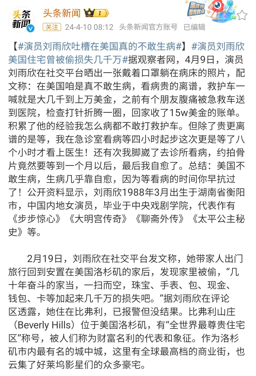 无独有偶,演员刘雨欣今天也发了一个帖子:
