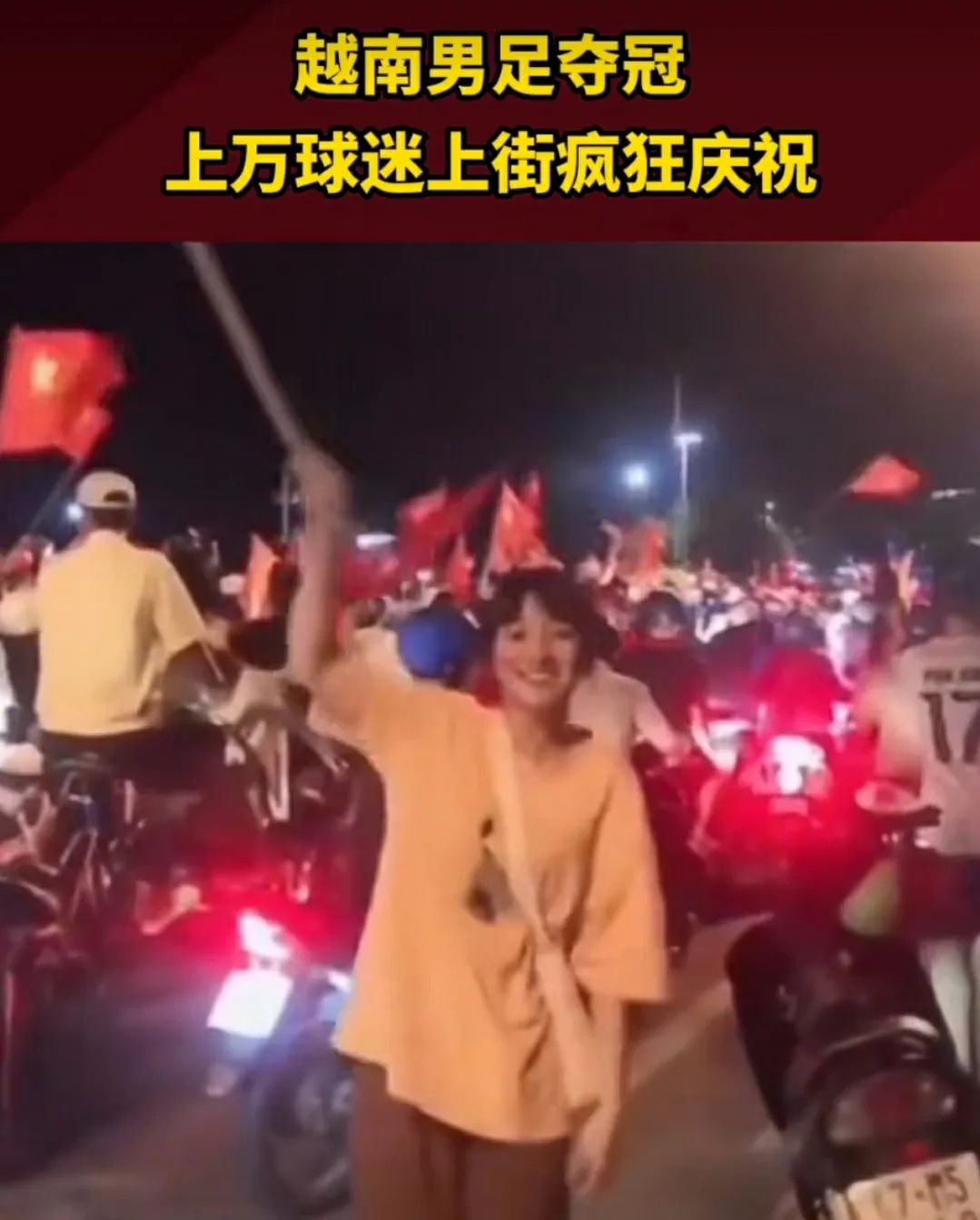 如今我对足球毫无兴趣。我只对越南人的上街庆祝有兴趣。我看到他们人山人海、纵情恣欲、成群结队在大街上彻夜庆祝。