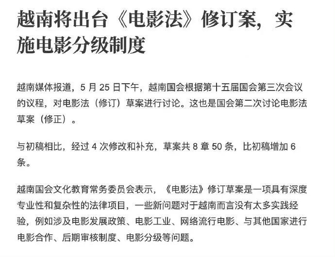 最近另一个大新闻,是越南电影分级,这无疑是令人羡慕。电影分级,意味着成年人有了特权,可以看一些小孩子不许看的电影。